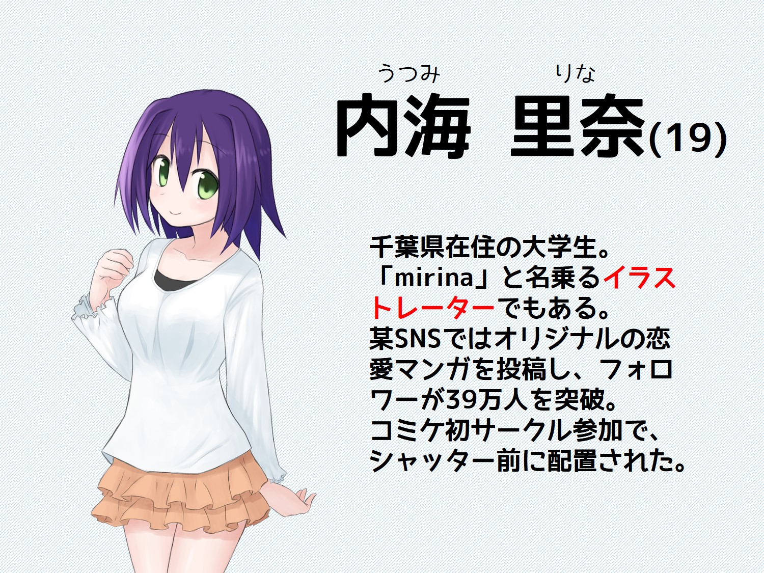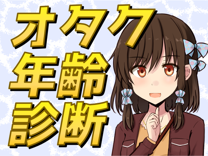 | 第1.5弾(スピンオフ)『オタク年齢診断』 公開開始日:2021年5月3日(エアコミケ3) 公開形態:Webでブラウザゲームまたはダウンロードゲーム(※パソコンやスマホで遊べます) 価格:無料 ゲーム公開ページ:ゲームアツマール フリーゲーム夢現 ふりーむ! 出題範囲:2021年4月末まで 『オタク年齢診断』特設ページはこちら |