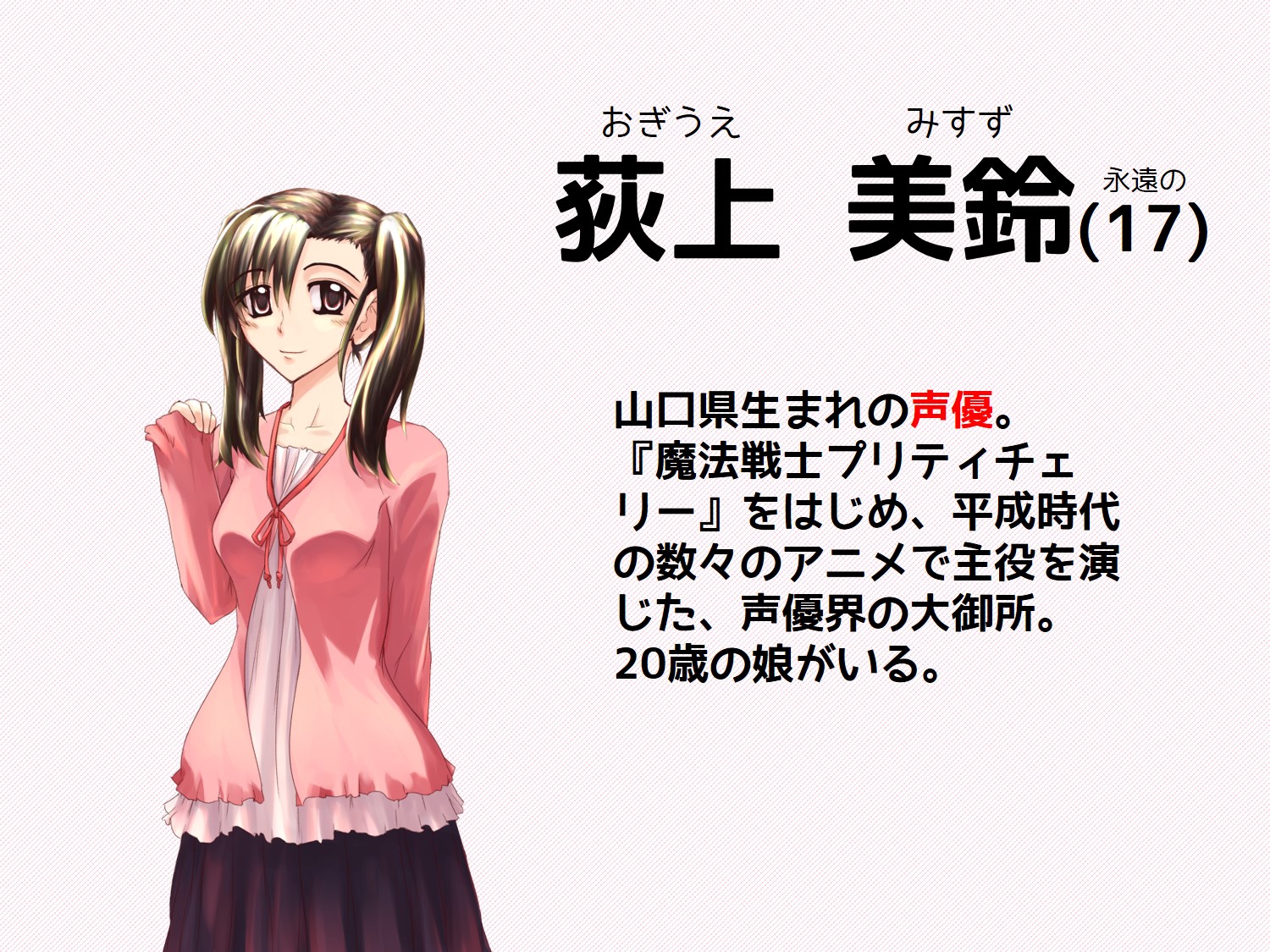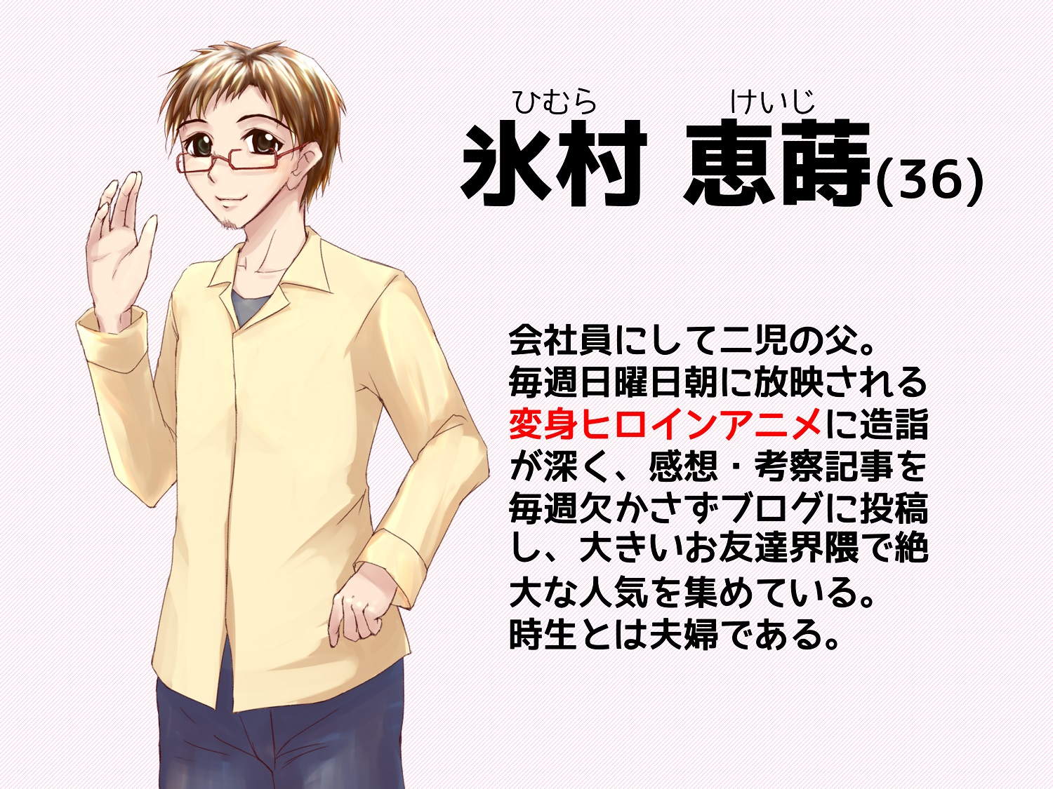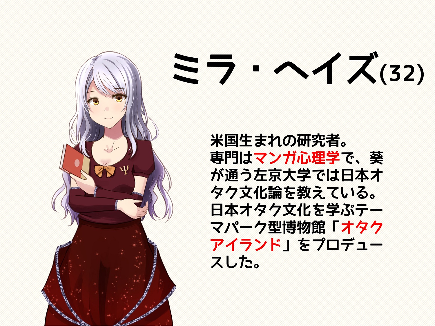 朝森久弥(プロデューサー・ディレクター・クイズ・シナリオ・スクリプト・その他あらゆる雑用) 「「オタク」は死んだ!だが、日本オタク文化は永遠に続く。我らがそれを望む限り」 本作が、日本オタク文化を愛するすべての人のコミュニケーションツールとなり、世界をちょっぴり平和にできれば、これほど嬉しいことはありません。 |